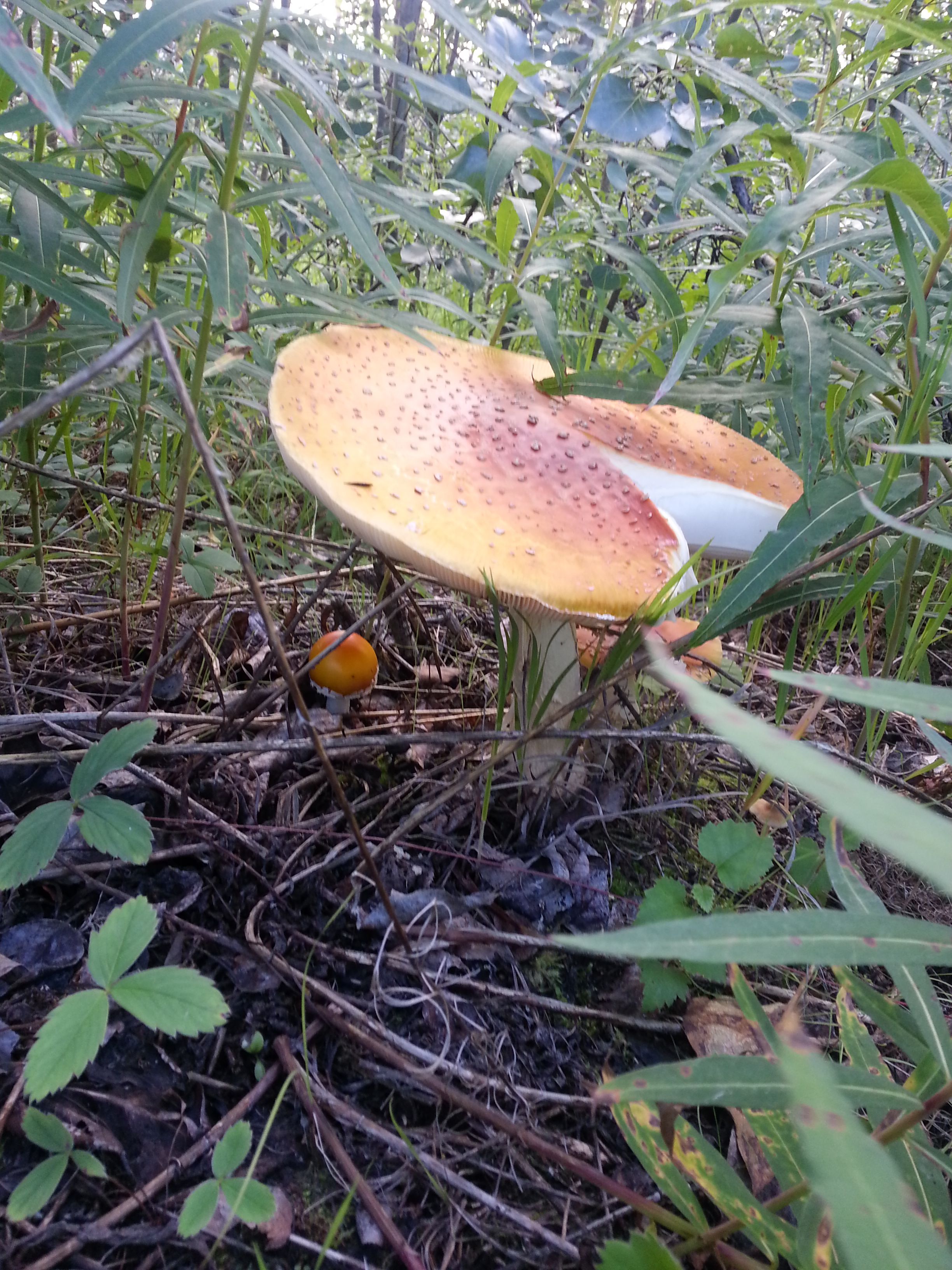 Today was a fairly successful forage. There is a rather large field across from our house that has been for sale for years. We often walk our dogs there when the weather is nice. In the winter people run their snow machines there. There are several spots in the field where wild strawberries and high bush cranberries and fungus flourish. We’ve been there often enough that we know where to look – and we’ve gotten some amazing photos of some huge poisonous Amanitas over there, too.
