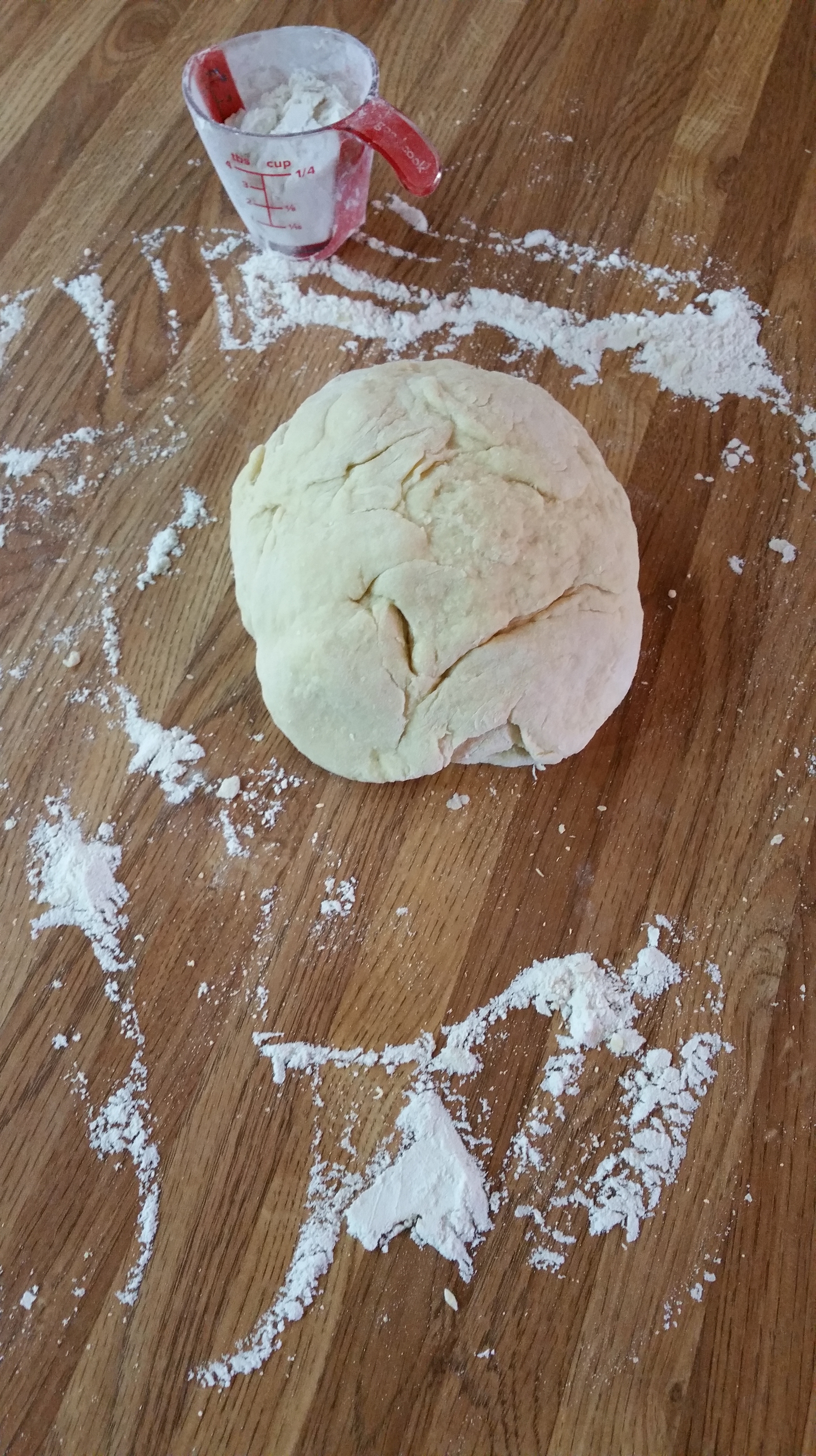 Turn the dough out onto a floured surface and knead the dough, using a rolling motion, for 8 to 10 minutes. Let the dough rest for about 10 minutes, then divide into 4 or 6 equal parts, which ever you find easier to work with.