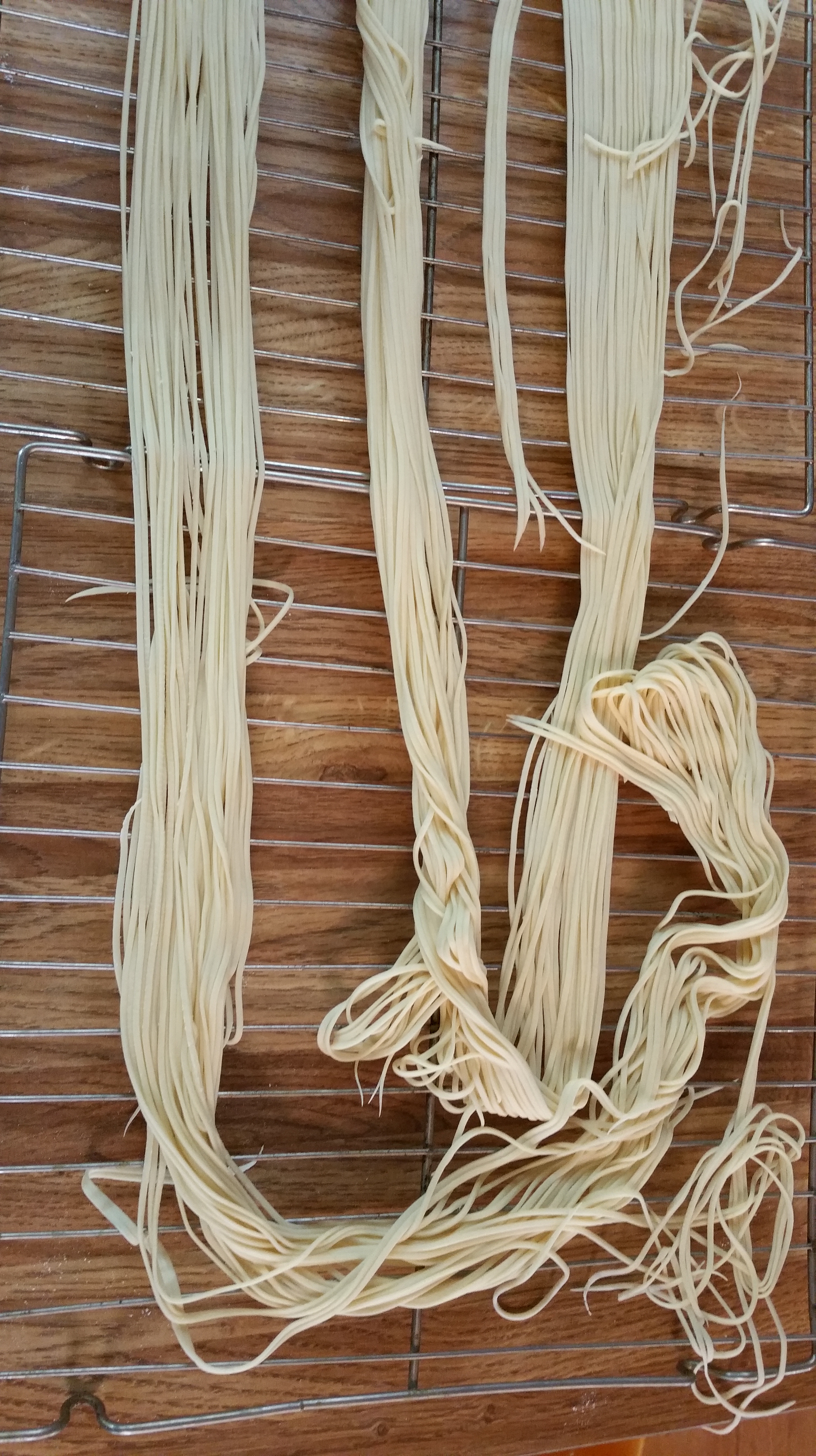 Allow the pasta to dry for about 30 minutes before cooking. If you don’t have a pasta drying rack, a cooling rack, like you would use for baked goods works well, or a kitchen towel will even work in a pinch.